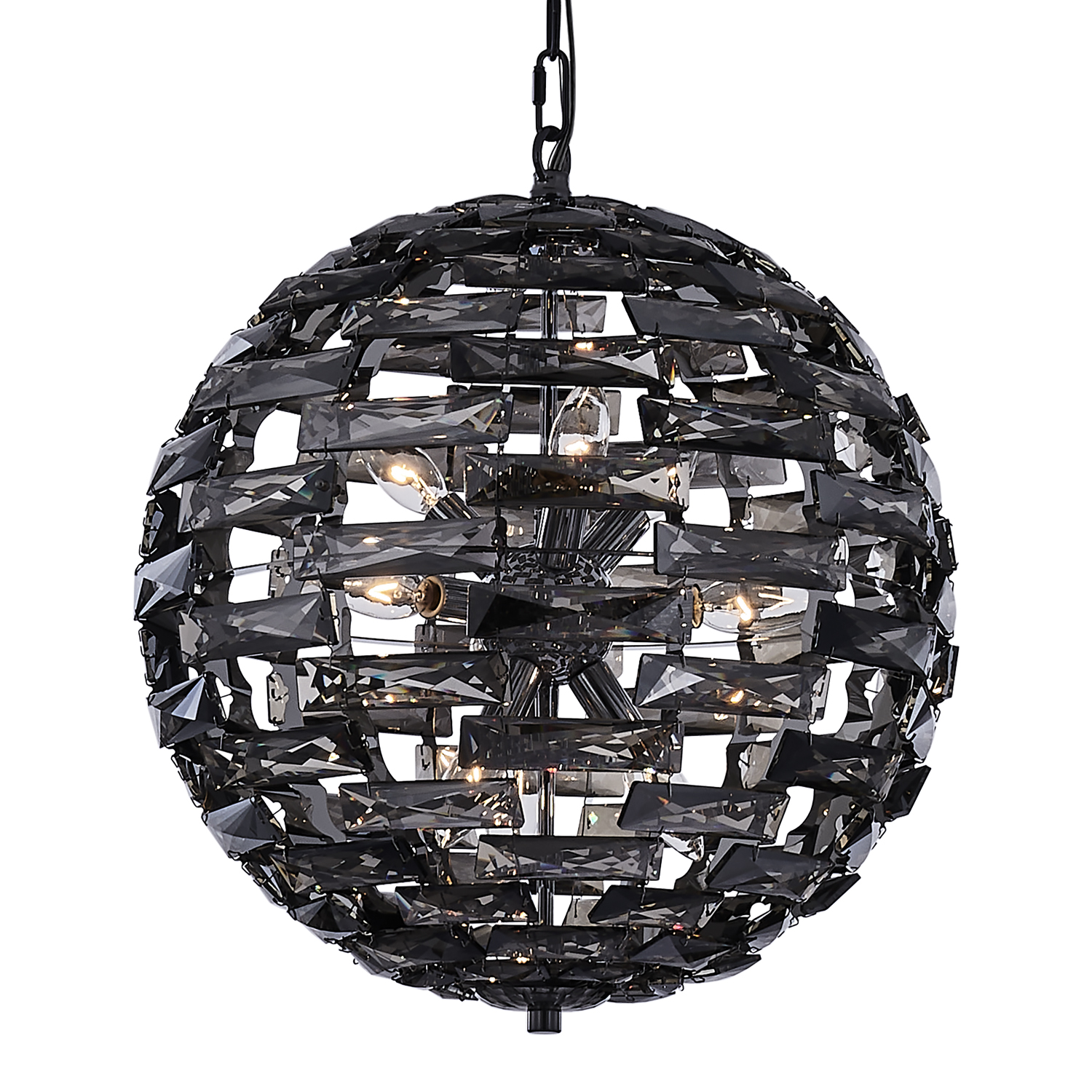 The Alta Collection is made of many crystal bars carefully arranged to make a perfect sphere crystal diffuser. Inside the Chrome frame, a light Sputnik cluster adds an inner layer. The Alta is a great centerpiece in any room.