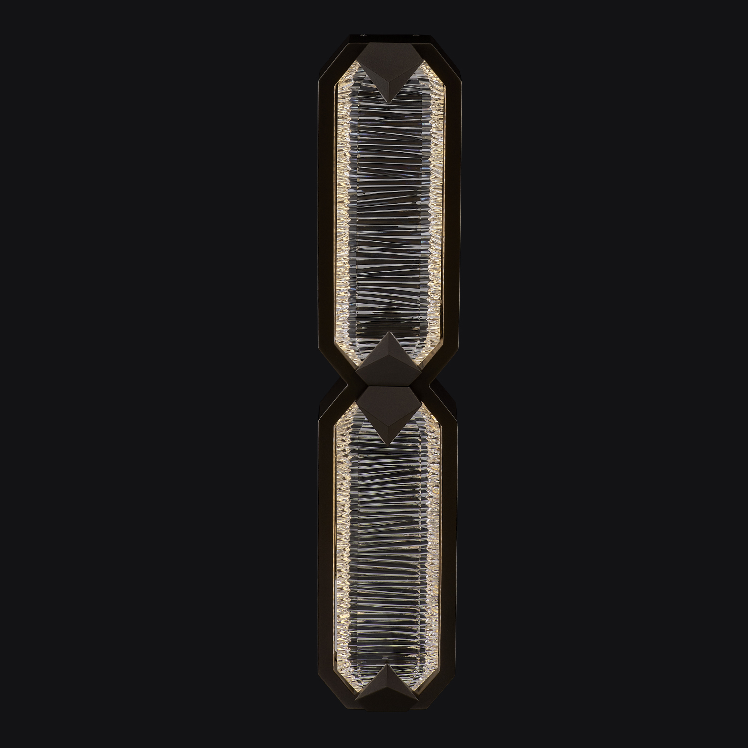 The Carato diamond-cut crystal outdoor wall sconce with cast brass jewelry clips creates a modern style with sparkle for the outdoors. Featuring horizontal cuts on 3 sides allowing the crystal to magnify the cuts and refract light on all the cut surfaces. This cut allows for an even glow around the entire crystal. Finished in a Fluorocarbon Bronze that will withstand the harshest of environments. This wall sconce is suitable for both indoor and outdoor use.