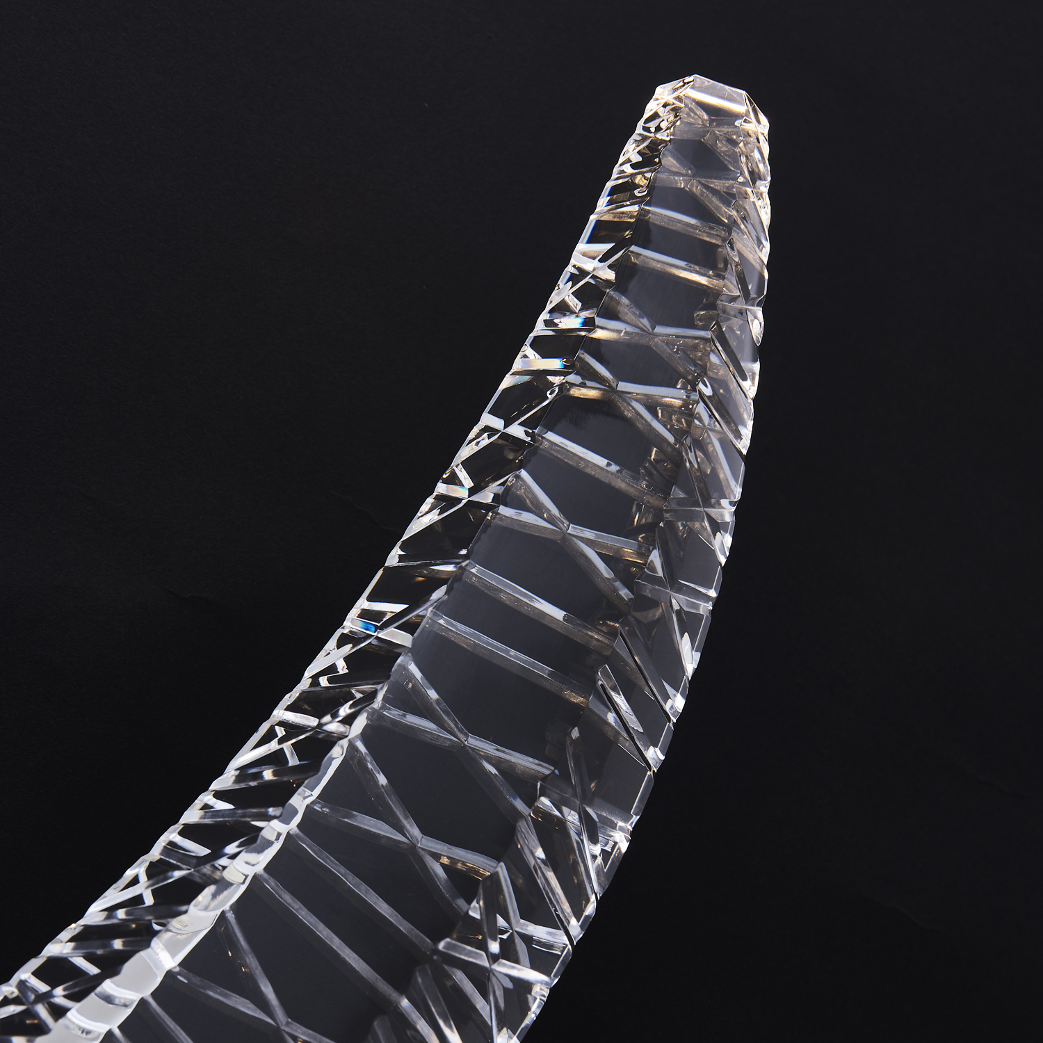 Drawing inspiration from antlers, the Corna Collection presents a sleek and artistic take on the traditional chandelier, incorporating distinctive crystals and advanced LED technology. The design boasts a hexagonal stainless steel framework, each piece uniquely accented with crystal details. This refined fixture would seamlessly complement a contemporary lodge aesthetic. Available in an elegant Bronze finish.