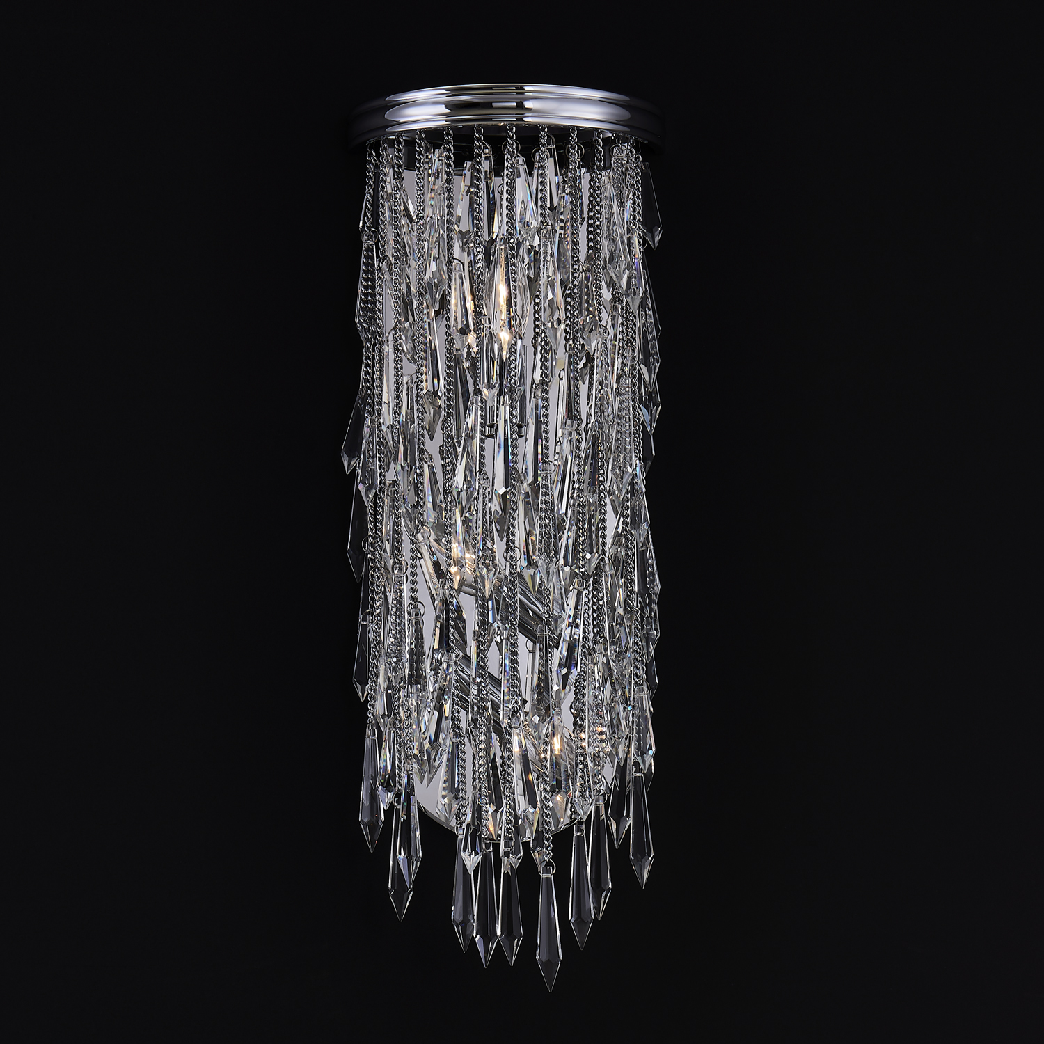 Organized randomness of fringe draping and gravity creates the shape of Frangia. Chains act as the support for the Crystal’spears for a boho glam vibe. Offered in Allegri’s exclusive Polished Chrome or Brushed Champagne Gold Finishes.