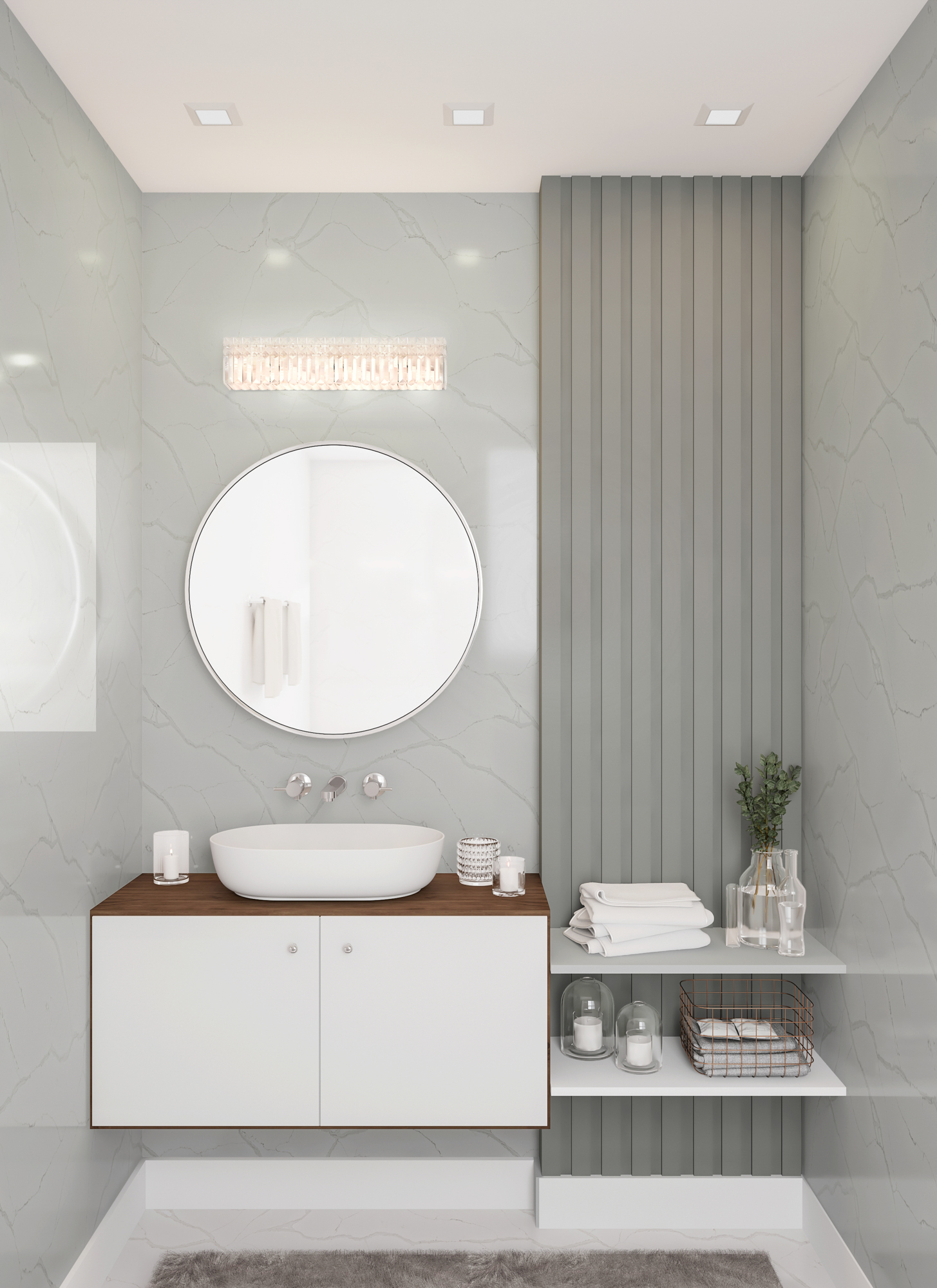 Faceted Crystal Squares and Rectangles come together in harmony to create this clean, brilliant vanity series that will certainly be the finishing touch of jewelry. Available in Chrome or 18k Gold.